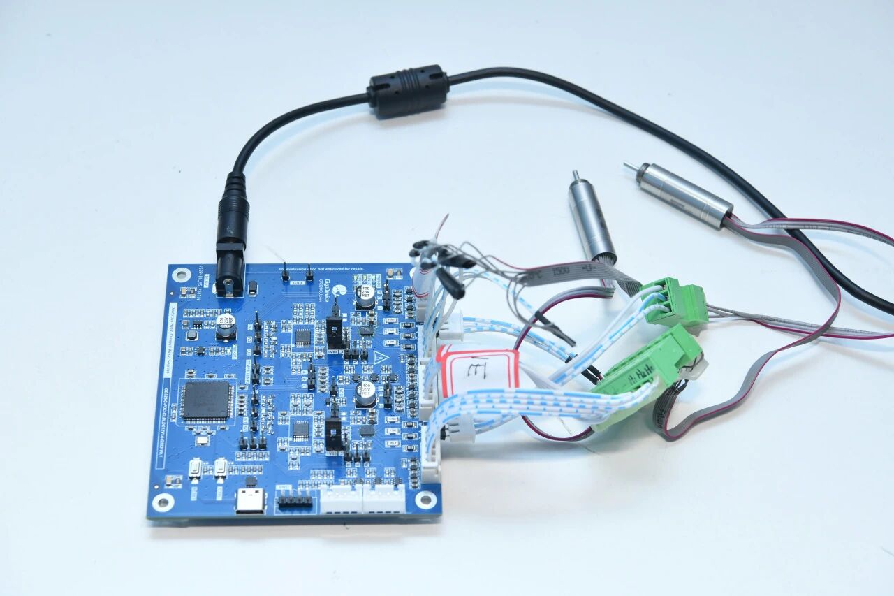 空心杯高开关频率80kHz,电流环控制频率40kHz,电流环带宽2kHz,5us完成一个电流环运算,双电机同步控制。
