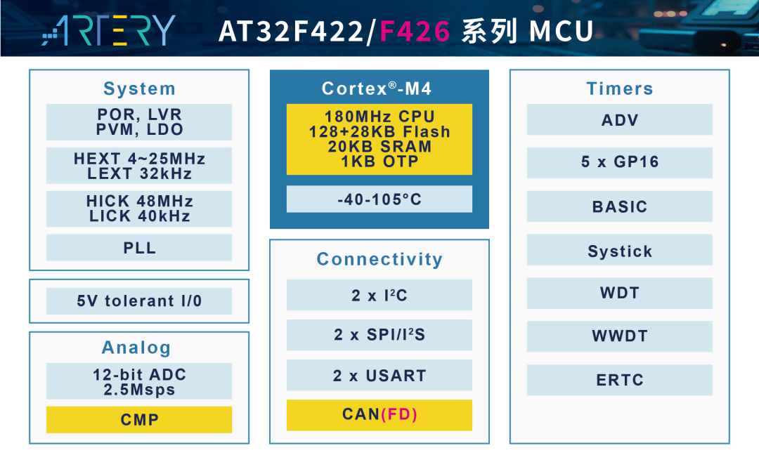 雅特力AT32F422/426系列MCU,超值型重塑高性能MCU标