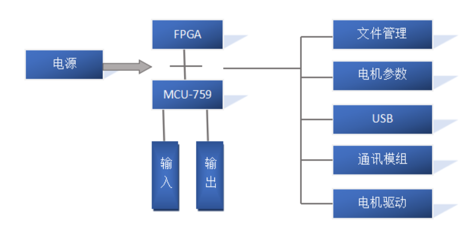 控制芯片,主要完成电机参数、插补计算、人机交互、加工文件管理等控制。辅助芯片FPGA负责完成各轴脉冲输出、原点检测、输入信号处理等。