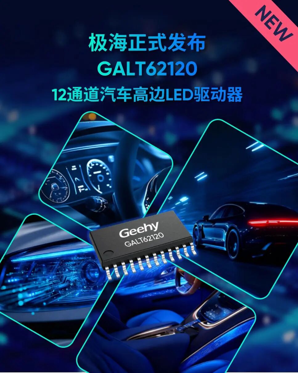 远超传统燃油车的35颗。为汽车照明系统提供更先进、可靠的解决方案,极海正式发布GALT62120:12通道汽车高边LED驱动器。