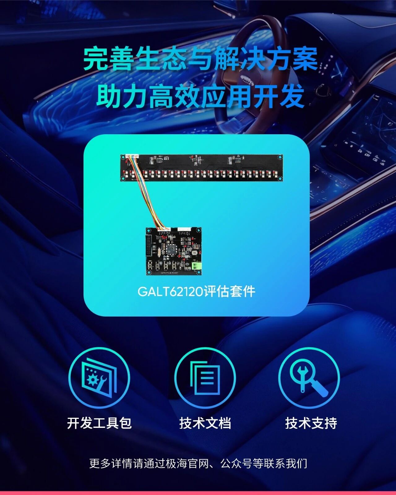 极海GALT62120汽车高边LED驱动器可提供配套的评估套件、开发工具包、技术文档等软硬件开发工具,以及高效响应的本地化专业销