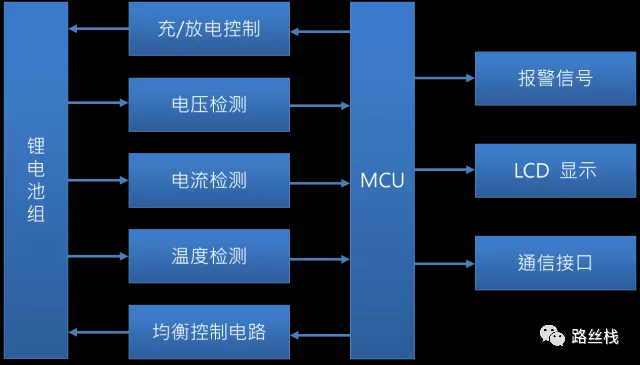 同时通过模拟前端采集数据,进行SOC估算和电池均衡,进而控制电池的充放电过程,实现对电池的保护,提升电池的综合性能的管理系